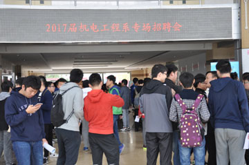 机电工程系2017届毕业生校园专场招聘会于2016年11月16日在技术楼TCN一楼大厅如期举行。有上海汽车集团股份有限公司乘用车公司、联合汽车电子(上海)有限公司、上海微电子装备有限公司和联合利华食品(上海)有限公司等36家企业参会,近420个岗位供学生选择。我系300余名学生参加了这场招聘会,其中有6家企业当场召开宣讲会并组织面试确定录取名单。此次招聘会给毕业生提供了充分的就业平台,也拉开了2017届就业工作的序幕。