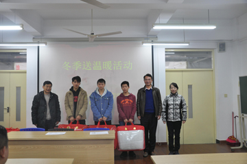 最后,由顾剑锋副校长、邵菁部长、单贵老师向家庭经济困难学生代表发放棉被。在发放仪式中,同学们和老师、领导合影留念,冬季送温暖活动在其乐融融的氛围中正式结束。(钟旭芬)